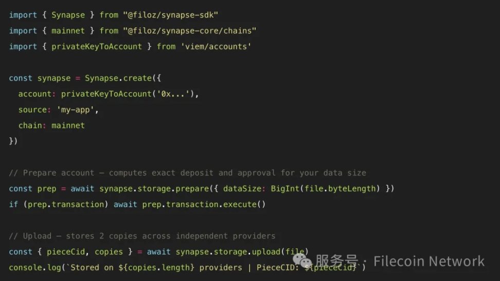 Synapse SDK 更新。 SDK 已从 Ethers 迁移至 viem ,以提供更简洁的 TypeScript 支持和更快速的开发体验。最新版本可自动将上传内容镜像到多个提供商,且不影响性能。这简化了接入流程,并为 SDK 开发者避免了未来可能出现的破坏性变更。