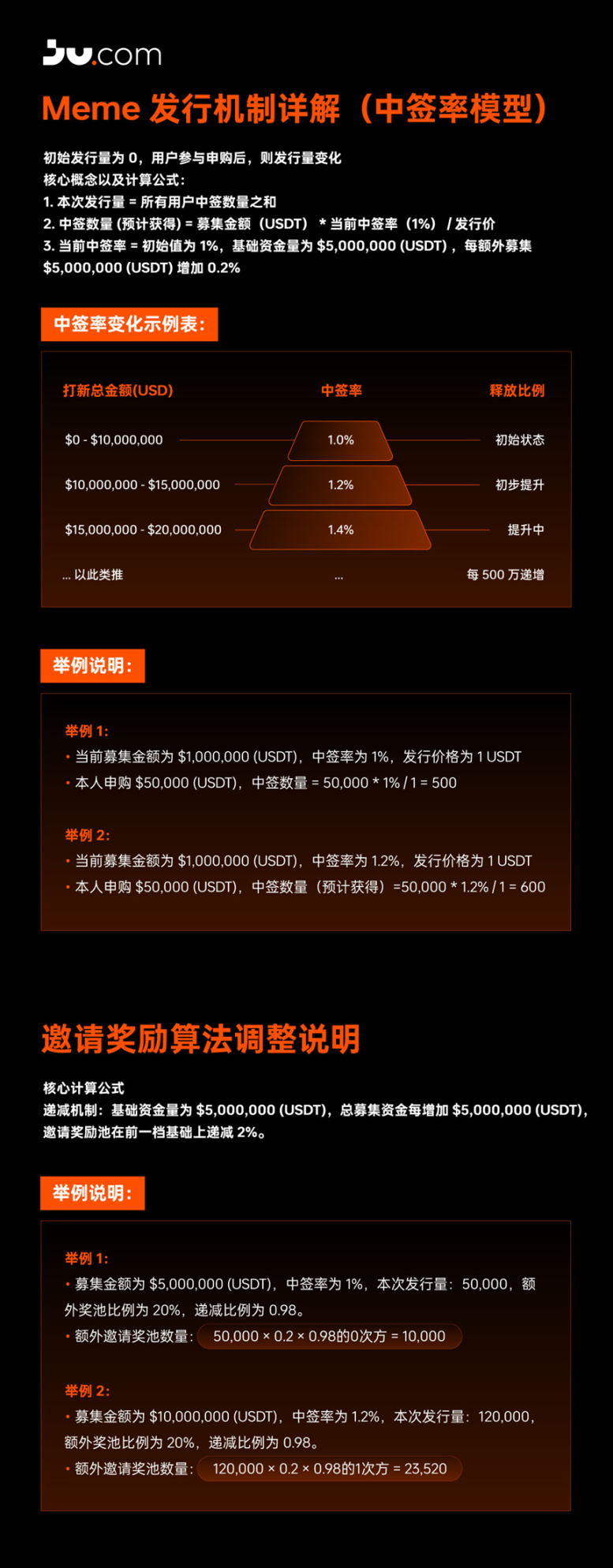 4. 当前中签率 = 初始值为 1%,基础资金量为 $5,000,000 (USDT) ,每额外募集 $5,000,000 (USDT) 增加 0.2%
