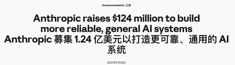 2021 年 5 月,Anthropic 接受了 Jaan Tallinn 领投的 1.24 亿美元 A 轮。