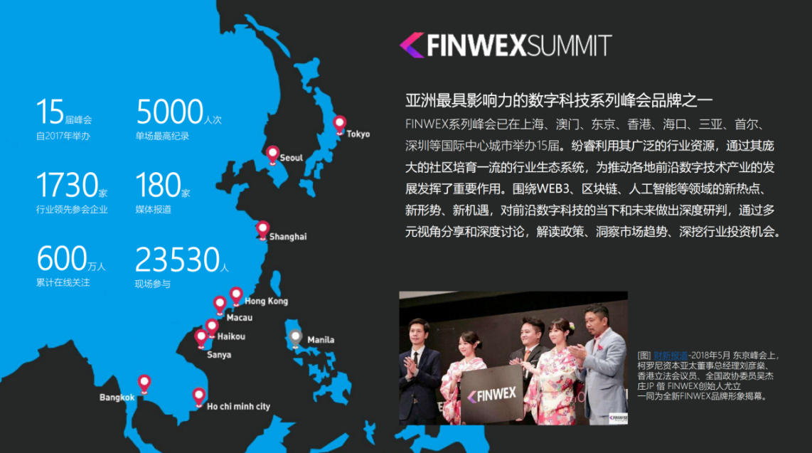 8 年来,FINWEX 纷睿团队已在上海、澳门、东京、香港、海口、三亚、首尔、深圳等国际中心城市呈献了 15 届高端千人投资峰会。