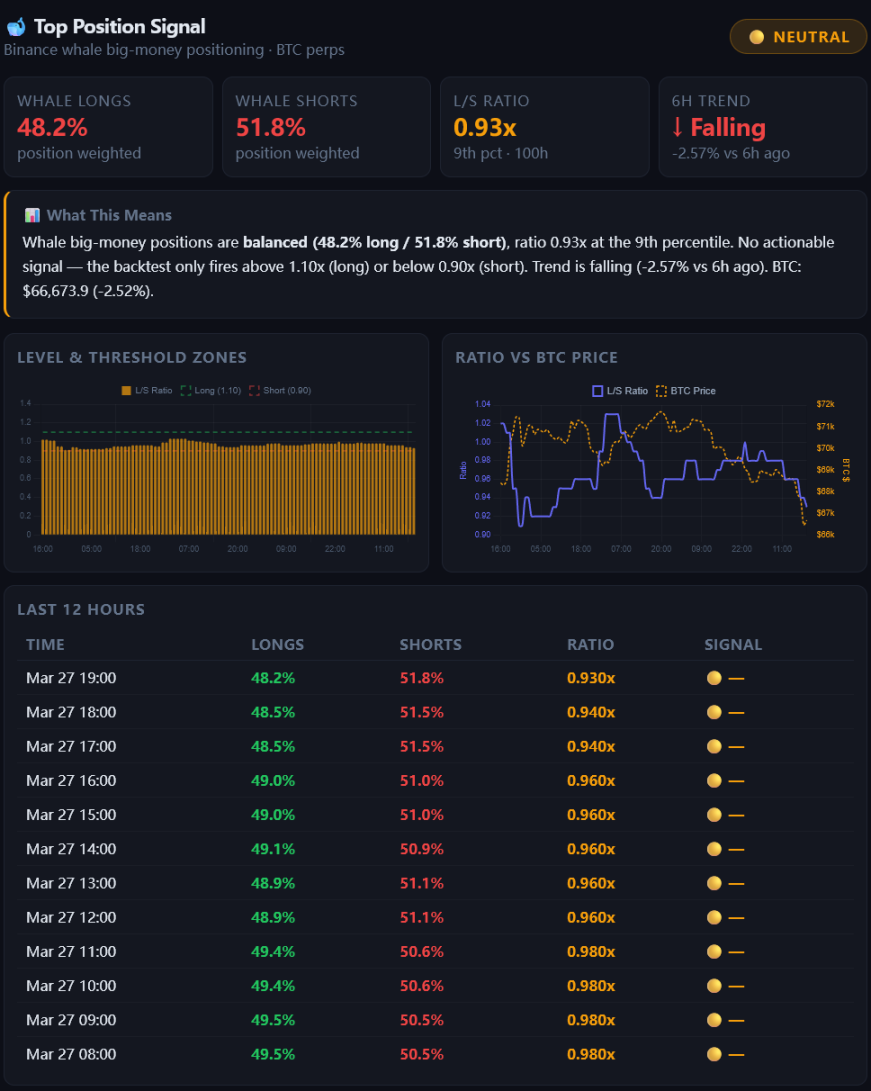 ▲ Starchild 用户制作的实时追踪币安鲸鱼大资金多空持仓分布面板