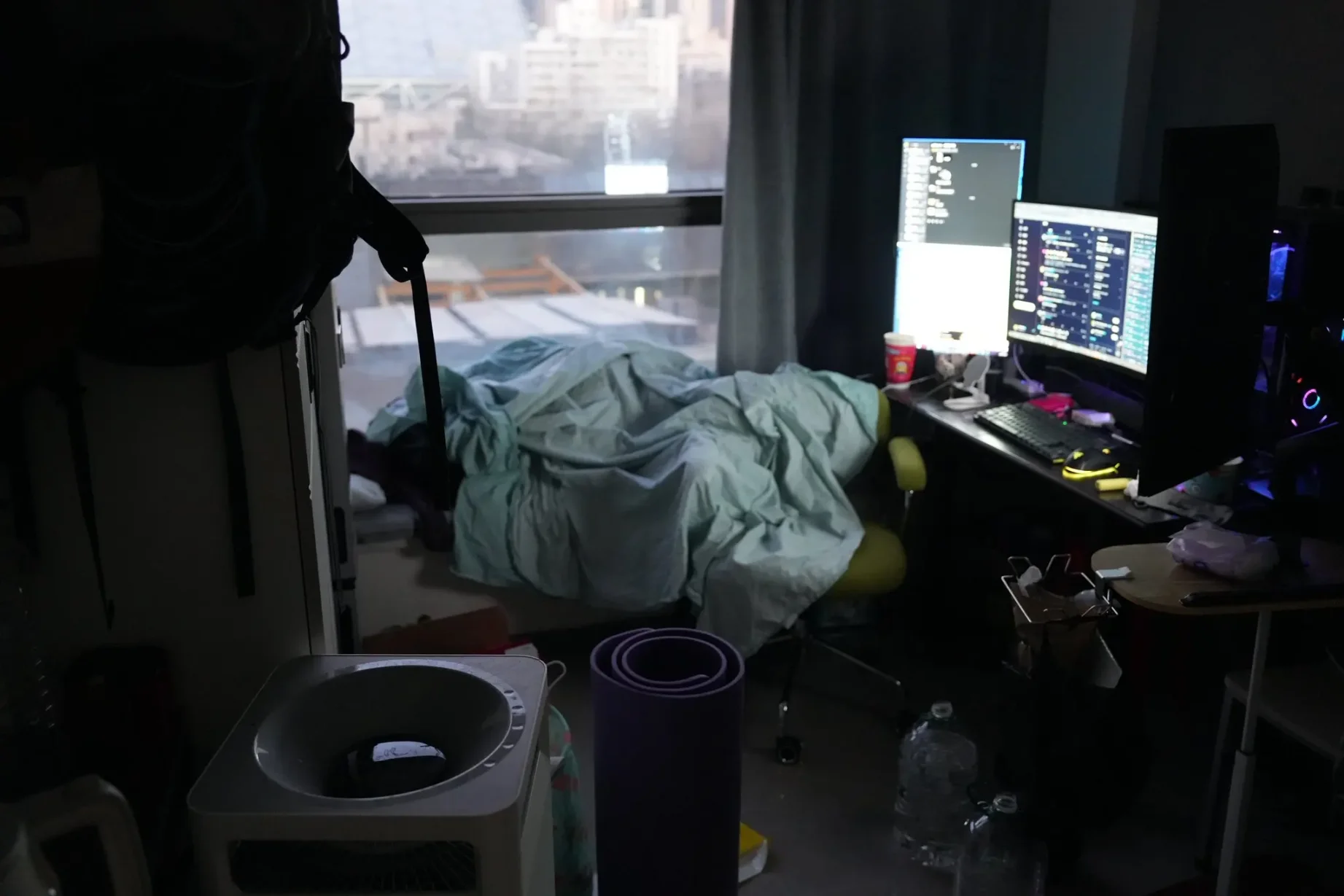 通常,Jerry 在早上 10 点就已经坐在了电脑桌前紧盯着屏幕。他的床紧挨着「工位」,这代表,从起床到进入「扫链状态」被压缩到了 1 秒之内。他的面前始终有着三个屏幕,中间带鱼屏,两边各一竖屏,这样的「装修格局」使 Jerry 能在高效查看社媒和监控警报的同时,迅速完成买入卖出操作。