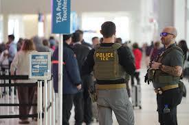 拒绝的理由虽有法律依据,但老百姓还是要生活的。为尽量减少航空系统瘫痪对中期选举的影响,特朗普在 3 月下令调派移民和海关执法局(ICE)特工前往机场,顶替因停薪离职的 TSA 员工。