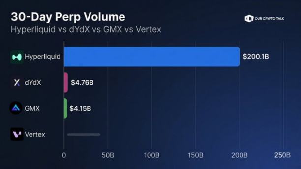 去中心化交易所迎来「单极时刻」,Hyperliquid 月交易量突破 2000 亿美元,超越 Coinbase 近半规模。