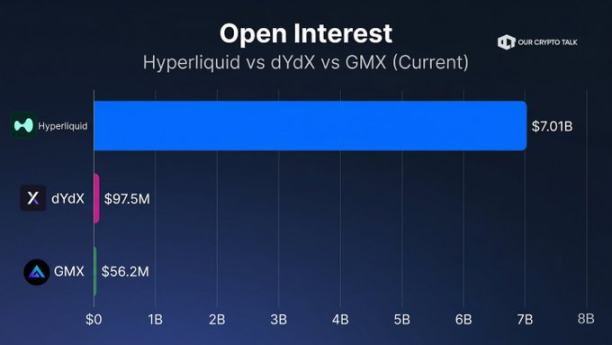 全球所有去中心化永续交易所未平仓总量中,超过七成集中于 Hyperliquid。