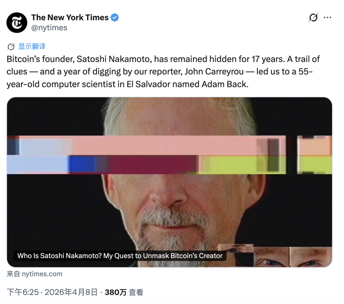 近期,《纽约时报》发布万字调查,从语言风格、技术路径与历史语境出发的多重比对,将 Blockstream 首席执行官 Adam Back 列为最有力的中本聪候选人。然而,这一说法很快遭到本人明确否认,相关论据也被业内普遍质疑难以成立。
