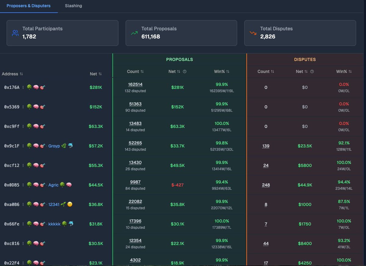 市场上很少有人专门做 Dispute 的用户,在 Dispute 环节赚最多的用户为 0xB7A ,盈利金额为 $17123 。